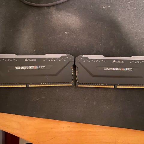 Corsair Vengeance LPX PRO RGB RAM. 16GB (2x8GB) RAM sticks der primært har været brugt til at spille CSGO/CS2. Hastighed er 3200MHz. Ville have sat standen til "Som Ny", men de har dog været brugt regelmæssigt, på trods af at de virker perfekt.