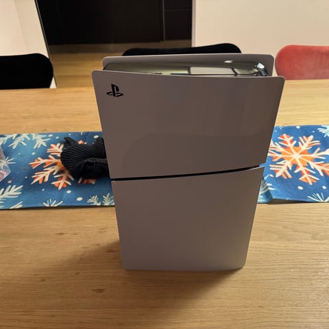 Sony PlayStation 5 Slim Digital Spillekonsol i hvid farve. Konsollen har Wi-Fi, Bluetooth og HDMI-tilslutning. Dimensioner inkl. emballage: dybde 43,5 cm, højde 12,7 cm, bredde 35,5 cm. Vægt inkl. emballage: 4,1 kg.