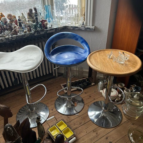 Svensk designer - 2 taburetter og 2 bar stole. Realistiske bud modtages