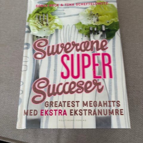 Suveræne Succeser Greatest Hits med Ekstranumre bog med farverigt omslag og tykkelse, indeholder opskrifter og information. Bogen er på dansk og er velegnet til madlavning og opskriftssamling.