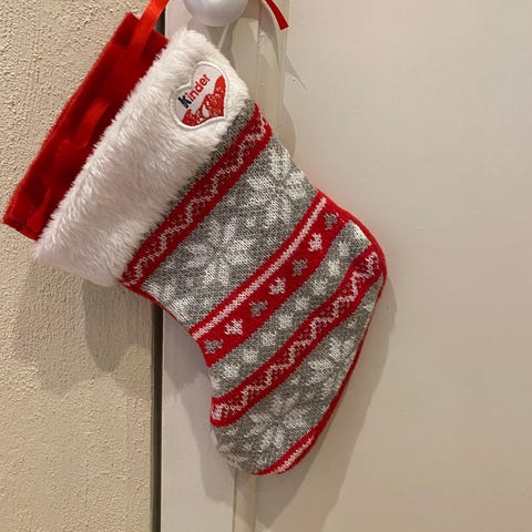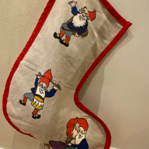 Lækker stor julestrømpe til børnenes kalendergaver. Af vævet uld vil jeg tro? Ubrugt. Kr 98,-