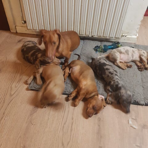 Hvalpene opvokser i vores køkkenalrum og er allerede så småt ved at vænne sig til de lyde der nu er i et hjem.