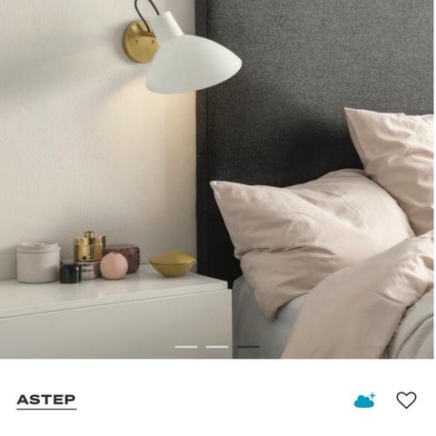 Astro VV Cinquanta væglampe designet af Achille Castiglioni. Lampen har en hvid skærm og messingdetaljer, hvilket giver et stilrent og funktionelt udtryk. Velegnet til belysning ved seng eller i stue, hvor pladsbesparende vægmontering ønskes.