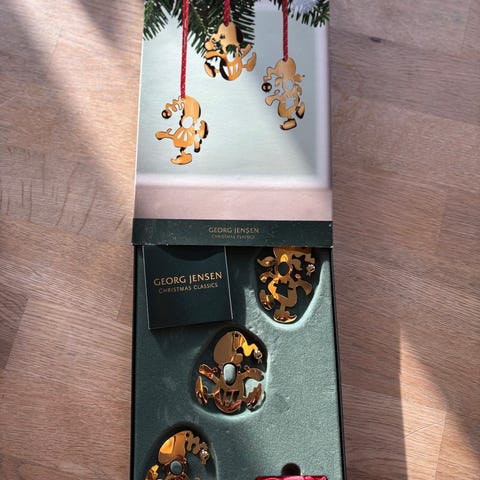 Georg Jensen Julepynt sæt med 3 nisser. Forgyldt . Aldrig brugt