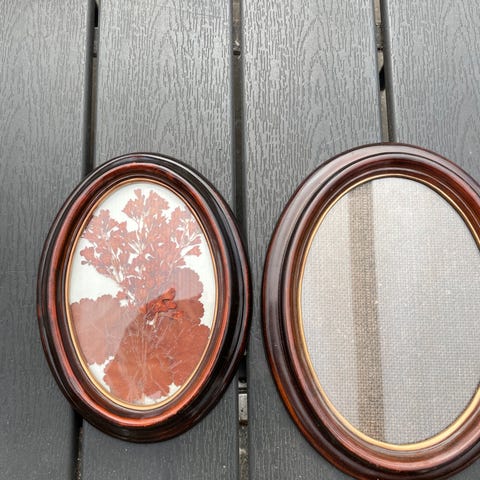 2 små gamle rammer med broderi samt 2 små rammer - samlet pris 40 kr