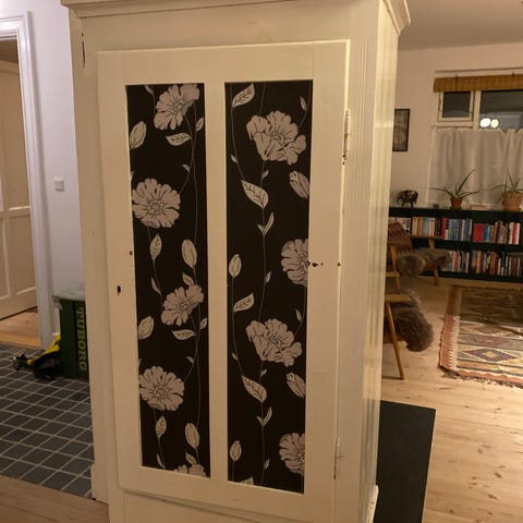 Karlekammerskab med hylder. Overdel er større end angivne mål 60x107 cm.