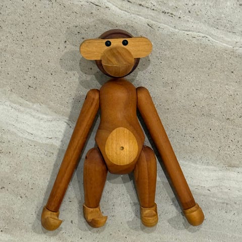 Holmegaard x Kay Bojesen glas abe i farven amber. Helt eksklusiv og i en farve som ikke kan findes i butikkerne. Aben er i perfekt stand og har samme størrelse som alle andre mini aber fra Kay Bojesen.