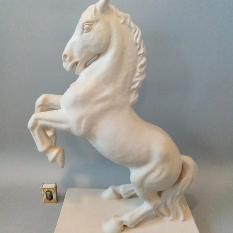 Flot og fejlfri ny Michael Andersen keramik kvinde figur med råbuk i flot grøn mix glasur