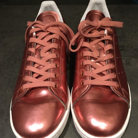 Gode sneakers - Adidas, hvid med blå bagkap. Stan Smith