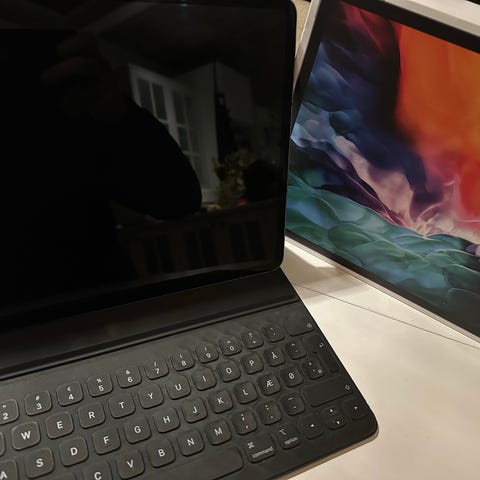 Der medfølger, Apple Magic Keyboard, Apple Pencil, ekstra Apple lader og USB-kabel.