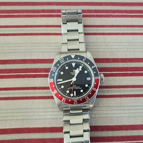 Smukt Tudor ur med brugsspor i form af hairlines på urkassen og et 0,5 mm hak i kassen, som kun ses i skarp lys.