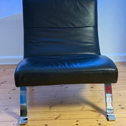 FLOT OG MEGET VELHOLDT LÆNESTOL MED CHROMSTEL .