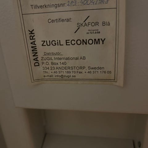 Våbenskab med nøgler og indre skab til pibe, bundstykke eller andre mindre værdier.