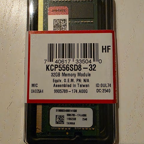 Helt ny og uåbnet. 2 x moduler. So-Dimm RAM til bærbar computer, Nas mm. 5600MT/s Non-ECC Unbuffered, CL46