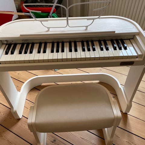 Klaveret medfølger ark med noder, der kan bruges til at lære barnet at spille på klaver. Det fungerer derfor fint for barnet som en introduktion til musikken, og er perfekt til at træne barnets auditive færdigheder, som får betydning for de verbale færdigheder og fremmer læseevnen.