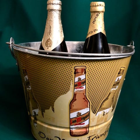 Her kan du købe en ny San Miguel spand. netpris er omkring 200kr - køb den her for 109kr.