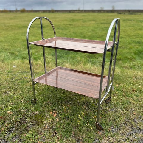 Cafebord/Barbord,med trompetformet fod i aluminium,plade i Teaktræ.