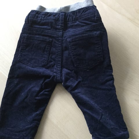 Rigtig søde bukser i fløjl, str 74. Bukserne har elastik i taljen samt knap. De er brugt 1 gang. Farven er blå.