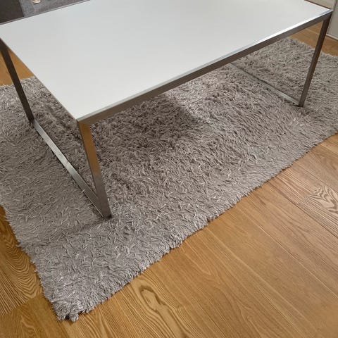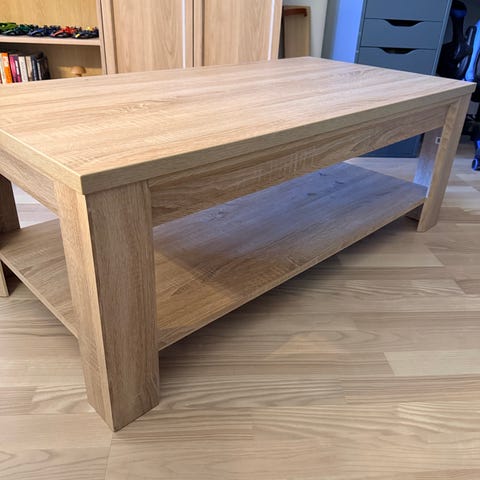 Larvik sofabord som hun er blevet brugt som tvbord. Bordet blev købt i december sidste år, og brugt indtil juni i år. Efterfølgende har det stået på et depot.
