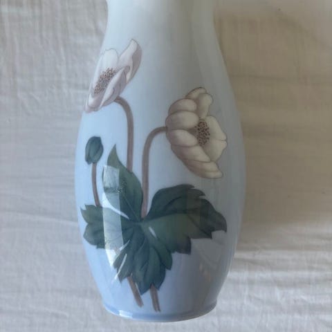 Vase, Vase med Høstanemoner, Bing og Grøndahl, Flot Bing & Grøndahl vase nr. 344 / 5249, dekoreret med Høstanemoner i 1. sortering sælges. Den er 21 cm høj og har en diameter på 11 cm. Fremstår i hel og fin stand. Kan sende med DAO.