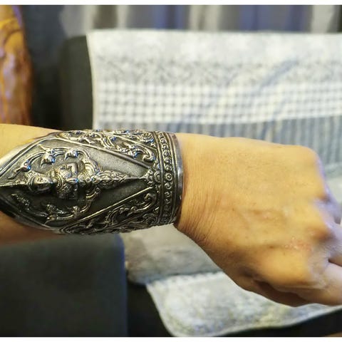 Smuk armbånd i 925/1000 sterlingsølv besat med 19 stk. naturlige rhodolit-granater.