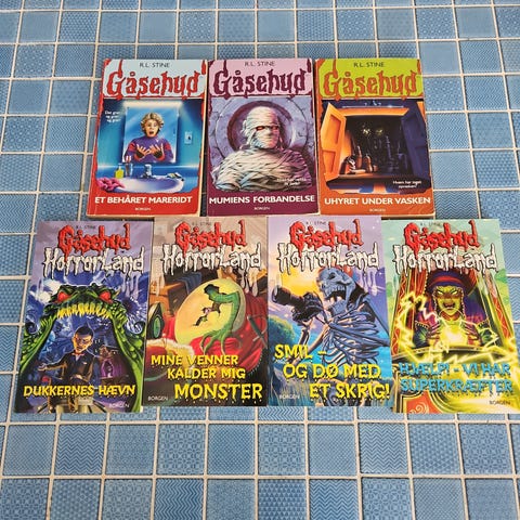 R.L. Stine Gåsehud bogserie bestående af flere børnebøger. Serien indeholder forskellige titler med spændende og uhygge temaer, velegnet til børn og unge læsere. Bøgerne er i paperback format og på dansk.