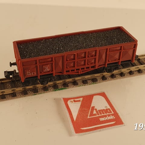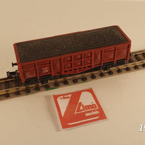 Åben godsvogn - brun - flad - med løst gods - som ny uden mangler og brugsspor