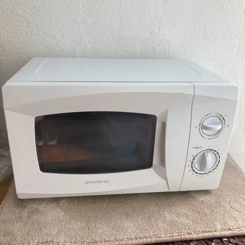 60 kr.Fin mikroovn 45 lang 32 dyb og 27 cm. høj… nem at betjene…kun 60kr.🥘🍕🥩….AabybroFøj til favoritter.