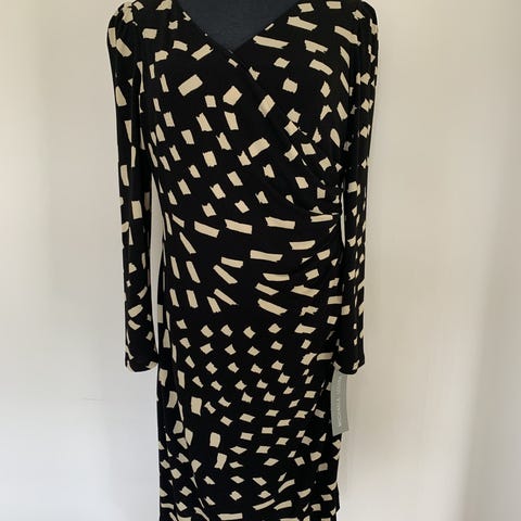 Figursyet snit, korte ærmer og lynlås bagpå. Fuldt foret og meget flot i pasformen.