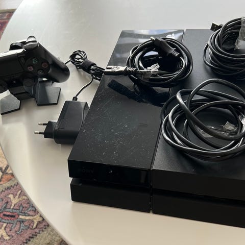 Sony Playstation 4 spillekonsol med to controllere og kabler