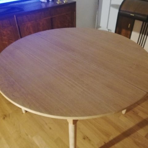 Flot rund spisebord i massiv egetræ med 2 tillægsplader