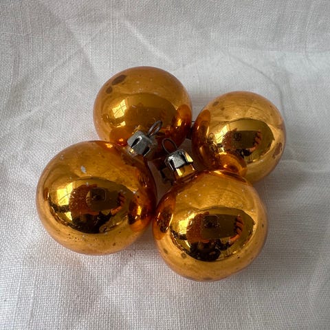Smukkeste gamle glas julekugler i de lækreste guld farvenuancer. Med ophæng til at hænge på juletræet.