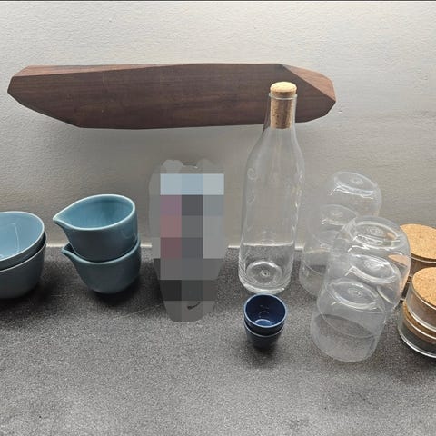 Udgået lille sæt bestående af sort og hvid porcelænskande. De sorte med lidt mærker i glasur.