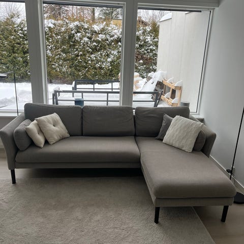 Sofa til 3 personer med chaiselong til venstreside. Fejler intet. Dyrefri og røgfrit hjem.