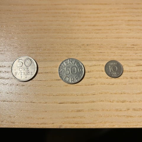 Skandinavien, Sverige, lille lot mønter og en enkelt seddel.