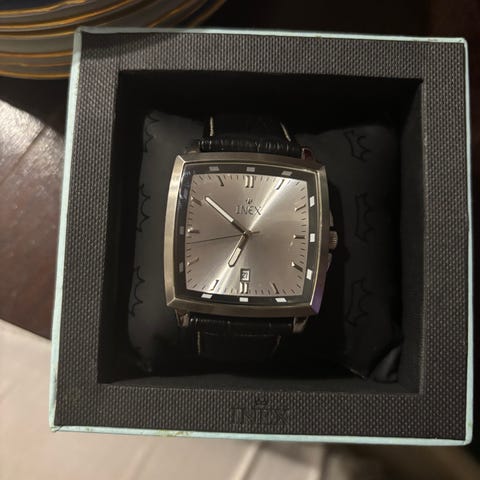 To elegante INEX armbåndsure med læderrem.