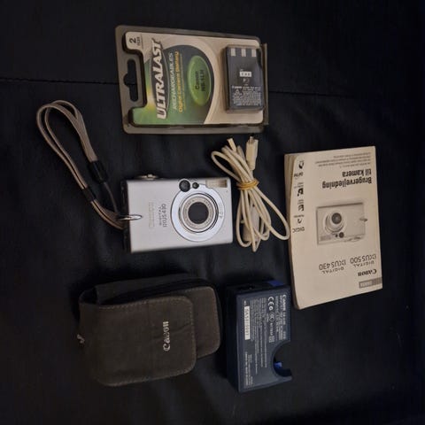 samt batteri, lader - SD hukommelseskort og USB kabel til PC.