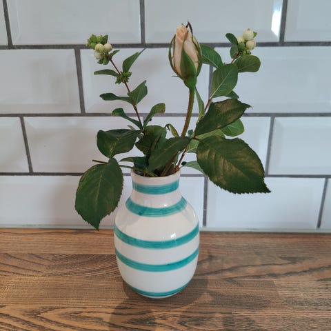 Kæhler vase 20 cm flot og en lysestage samme højde og ligeledes i hvid og sølv