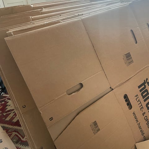 Kasserne er brugt til en flytning i forbindelse med ombygning. De fleste kasser er i meget god stand. Jeg har mange kasser, flere end på billedet.