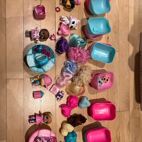 L.O.L. Surprisedukker med forskelligt tilbehør og opbevaringskasser. Tilbehøret inkluderer bl.a. tøj, sko, tasker, deikkedunke mm. og opbevaringsboksen er designet med flere rum til organisering.