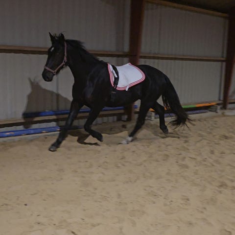 Fie er en supergod All Around hoppe, hun har både prøvet at gå stævner og jagt. Hun fungerer supergodt med begge dele. I dressuren er hun selv gående og let på tøjle.