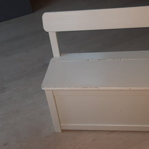 Sød børne slagbænk med plads til legetøj.