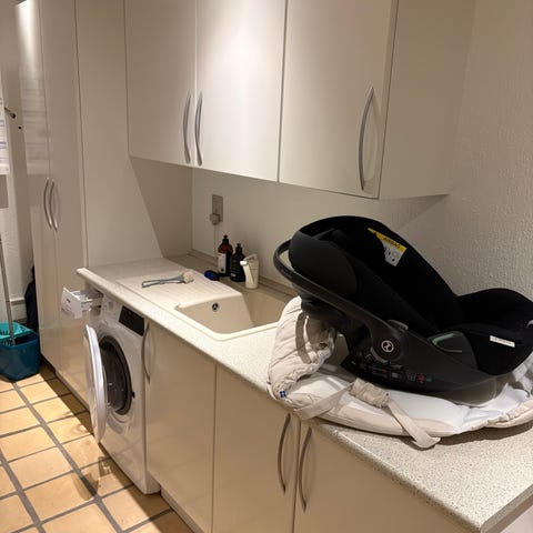 HTH bryggers med massiv træ bordplade. Tørretumbler og vaskemaskine medfølger ikke, men fryser før. Nedtages weekend uge3. Er i god stand men udskiftes grundet generel renovering.