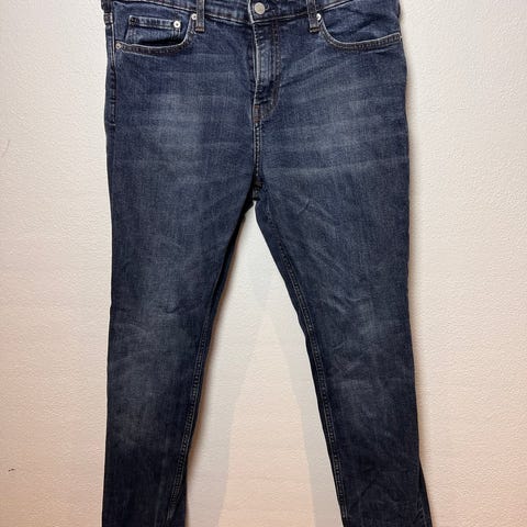 Calvin Klein Jeans Denim herrejeans i blå farve. Størrelse W36 og XL. Fremstillet af denim materiale.
