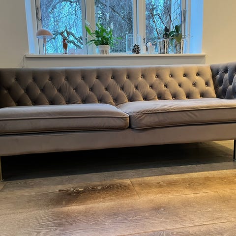 Fin 3-Pers veloursofa i mørkegrå med sorte ben.