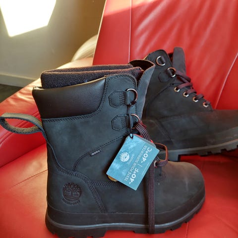 Timberland vandresko i størrelse 42, sort farve. Skoene er designet til udendørs brug og har en robust konstruktion, der egner sig til forskellige terræner. Materialet er slidstærkt og velegnet til vandreture og anden udendørs aktivitet.