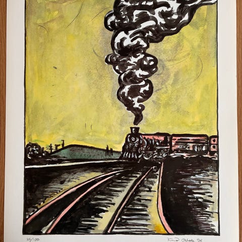 Trykt i 1996 - bestillingsopgave til De Danske Statsbaner (DSB) og udgivet til deres 150 års fødselsdag i 1997 - informationen trykt nederst på plakaten.