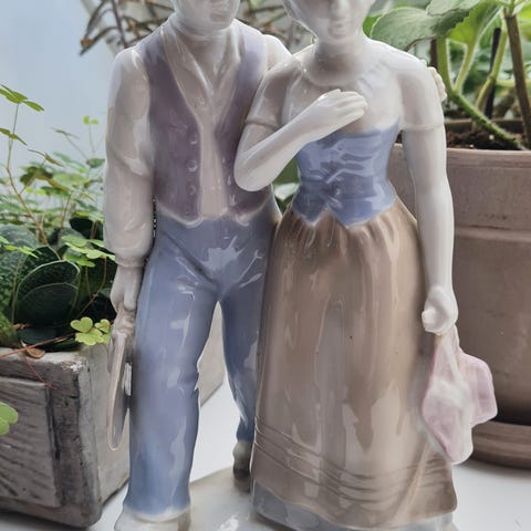 Porcelæns figur pige og egern , Spansk, Sød og fin figur af pige der taler med skovens dyr