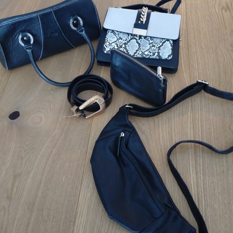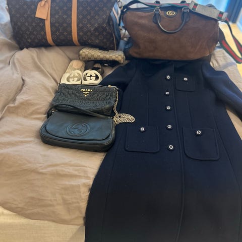 Forskellige mærkevarer, alt sammen ægte. Kvittering til sko findes, og kvittering for reparation af taske (i Gucci) findes. Mangler dog kvittering for dsquared bukserne.