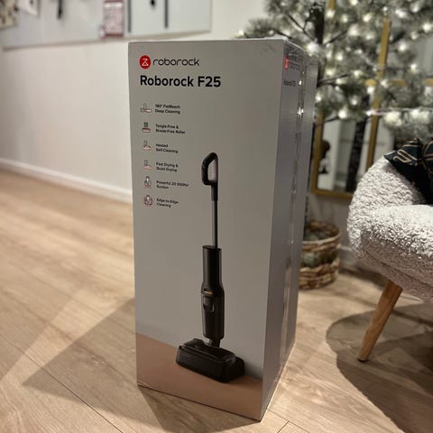 Roborock F25 trådløs støvsuger med kraftig sugeevne på 20.000 Pa. Designet til både tør og våd rengøring med Direct Smart Sensor, der justerer rengøringskraften automatisk. Kan selvvaske og tørre ved 90 °C. Arbejder op til 60 minutter ved fuld opladning og har en vandtank på 1,6 liter.
